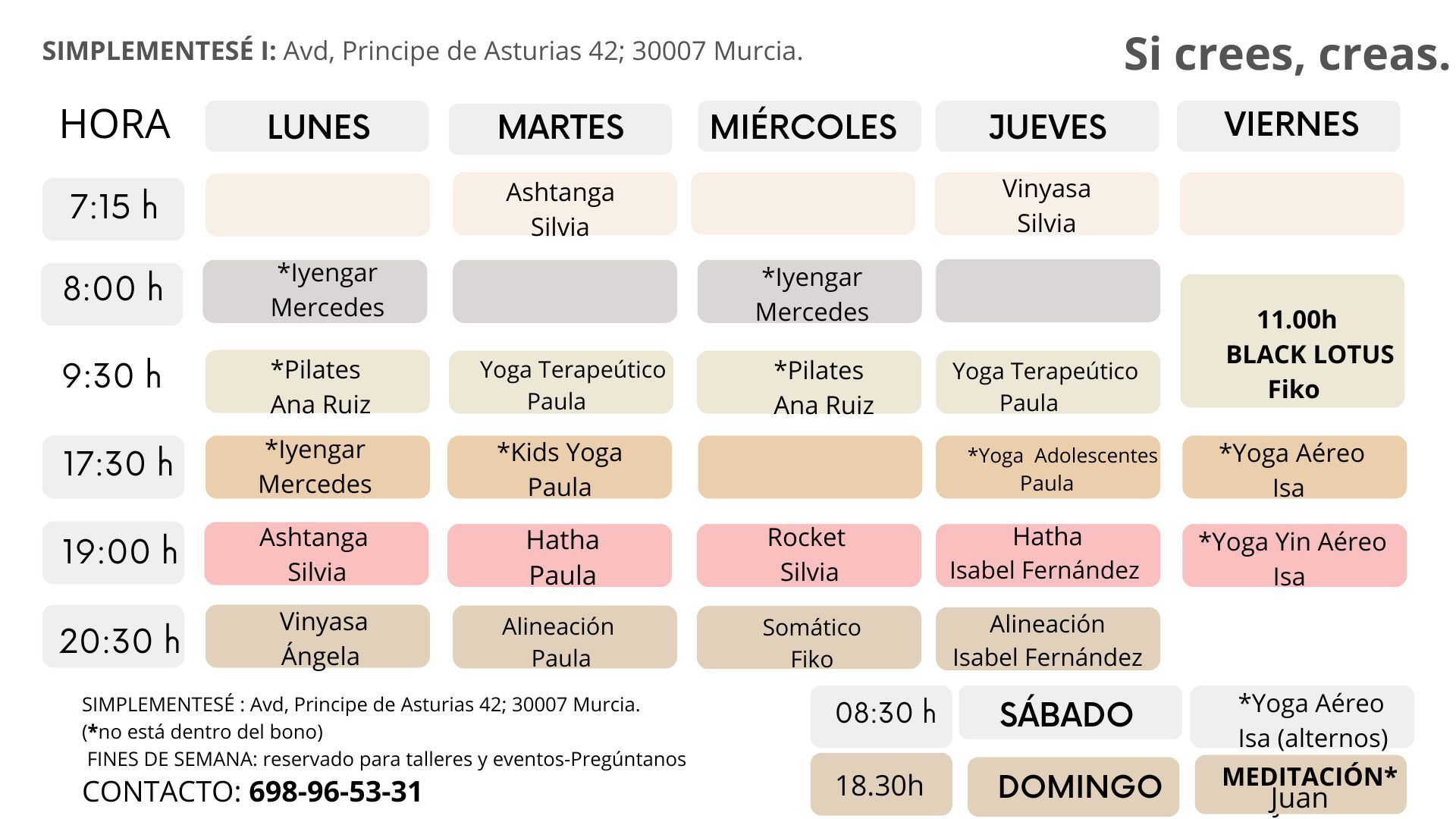 Clases diarias de 10 estilos de yoga distintos, diferentes niveles, con un nexo en común, aprender a escucharte, sentirte y sacarte de tu zona de confort para reencontrarte contigo mismo/a.